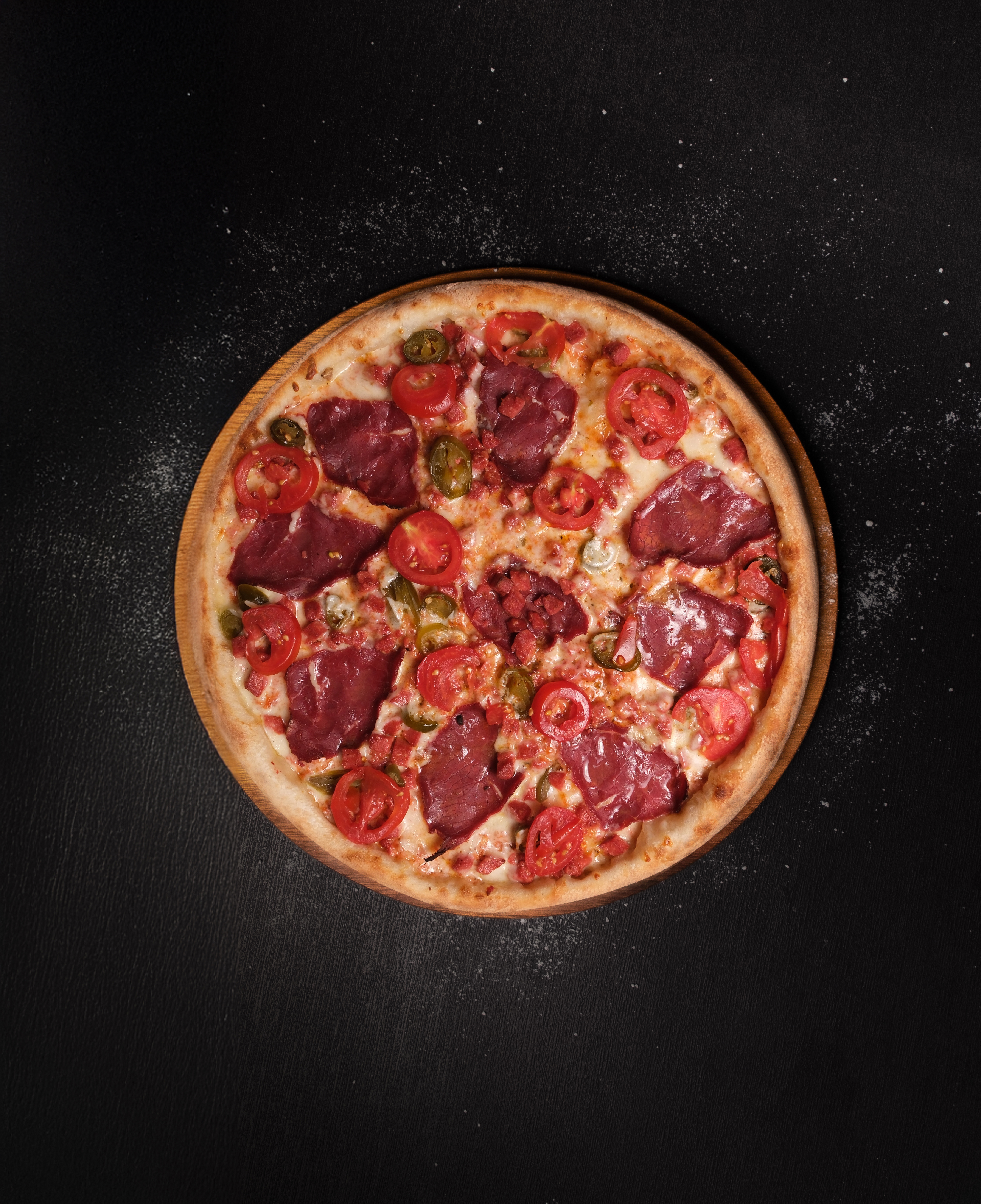 Özel Pizza Sos, Mozerella Peyniri, Dana Pastırma, Sucuk, Jalapeno, Çeri Domates